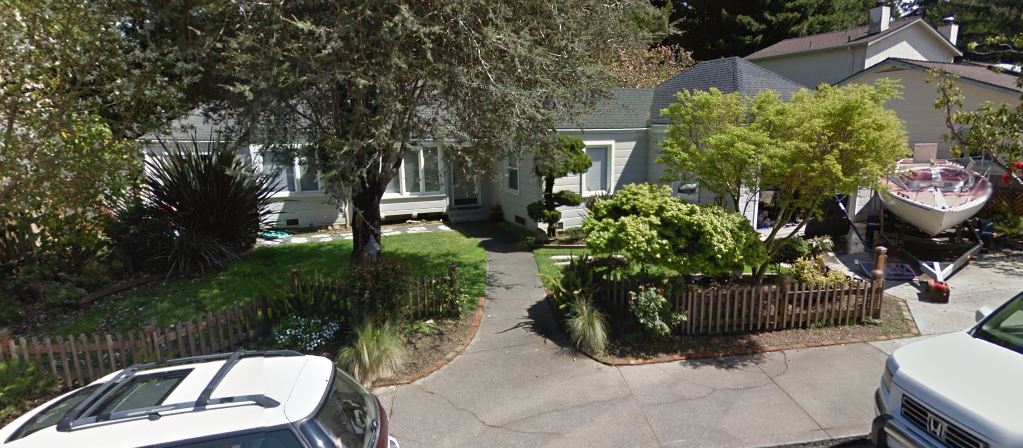 A one-story house with a broad, low hipped roof and large mullioned windows. Built by Ernest Pierson in 1941.