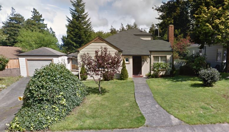 A one-story Colonial Revival house with a front gabled bay and shuttered windows. It was built by Ernest Pierson in 1942.