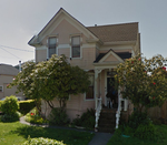 Built In 1902, this one and a half story shingle Queen Anne house has steep gables, and patterned shingle siding. The pedimented portico has turned columns. Although not clearly visible, there is a substantial square bay behind the two sets of trees to the left.