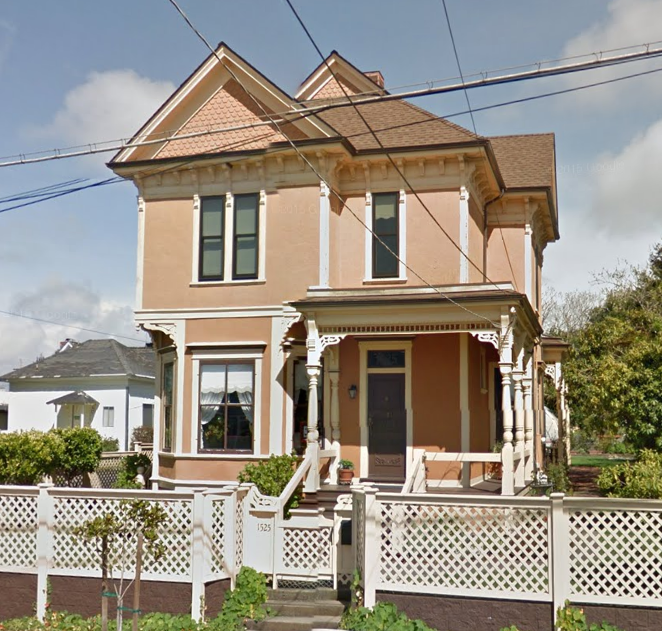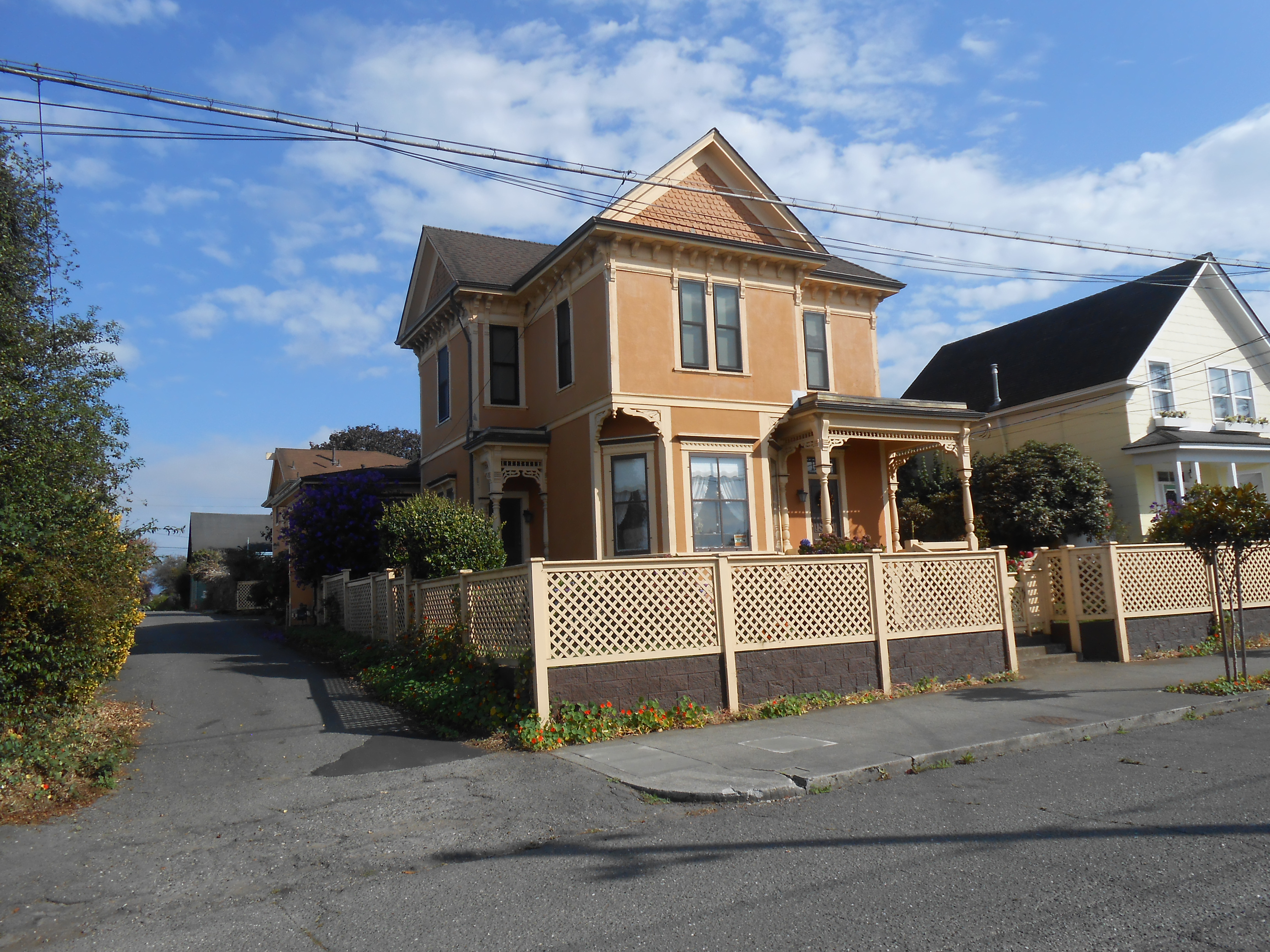 This 1892 house was built in the Queen Anne style. Notable elements of this house are steep roof gables, corner first floor bays, and classic porticos with columnettes for extra support.