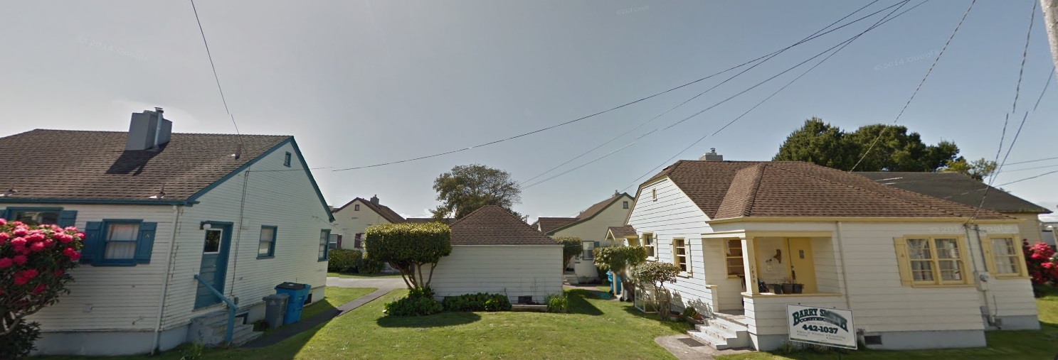 Built circa 1937 is a court of four single-story frame Colonial Revival houses.