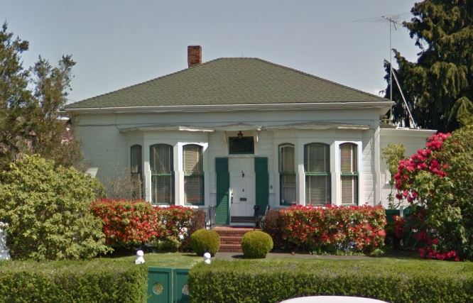 Built in 1867, this one-story simplified Italianate cottage with twin slanted bays and a hipped roof might have been used as the servants’ quarters and a carriage house for 1505 J St. Unknown additions were later added towards the rear of the structure.