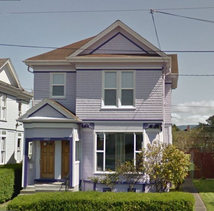This two-story Queen Anne/Colonial revival was built in 1904 with a decorative bay and a classically inspired porch. Built by Hill and Acorn. Identical to 1401 and 1413 J St.