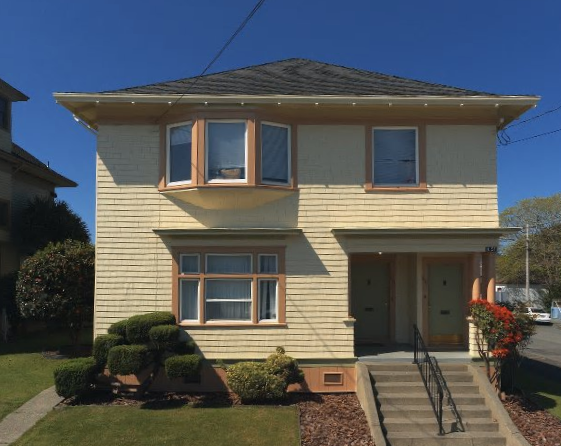 This is a two-story shingle and frame Colonial Revival built in 1909 and features a second-story bay and recessed porch. Original owner B: P. Keating. Source: Eureka, An Architectural View.