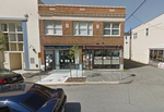 Built by Halsby and Lax in 1926, this two story commercial building has paired double hung sash Windows on the second floor facade with a tripartite window in the center. The ground floor commercial storefronts are a modern change from the original.