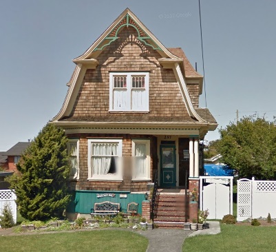 This is a two-story frame Dutch Colonial Revival house with gambrel roof, recessed porch and slanted bay, and decorative bargeboards. It was built in 1905. It appears to have a large addition in the back. The builder of the original house was Acorn and Rowe. The original owner of record was H.Hendrickson.