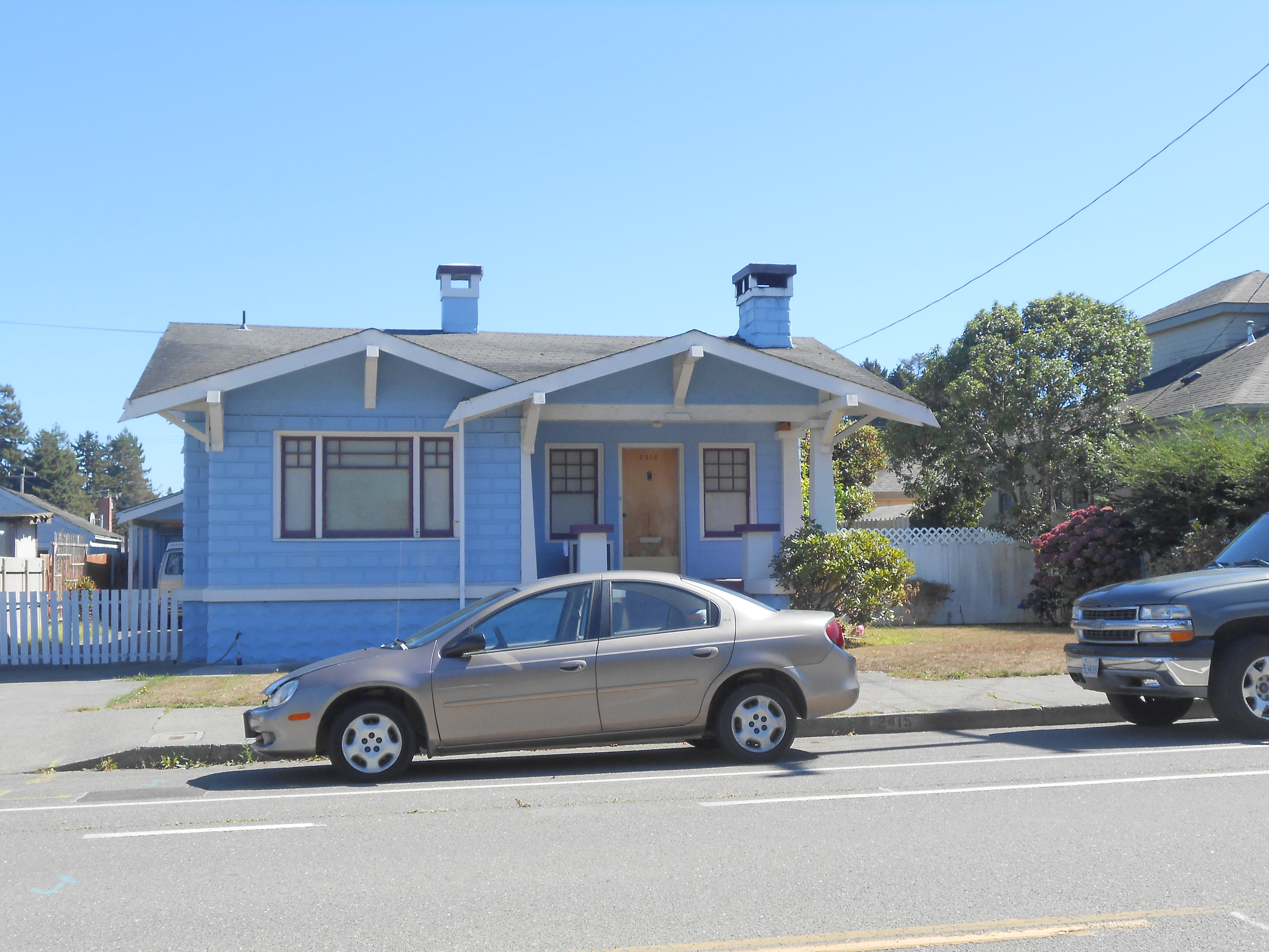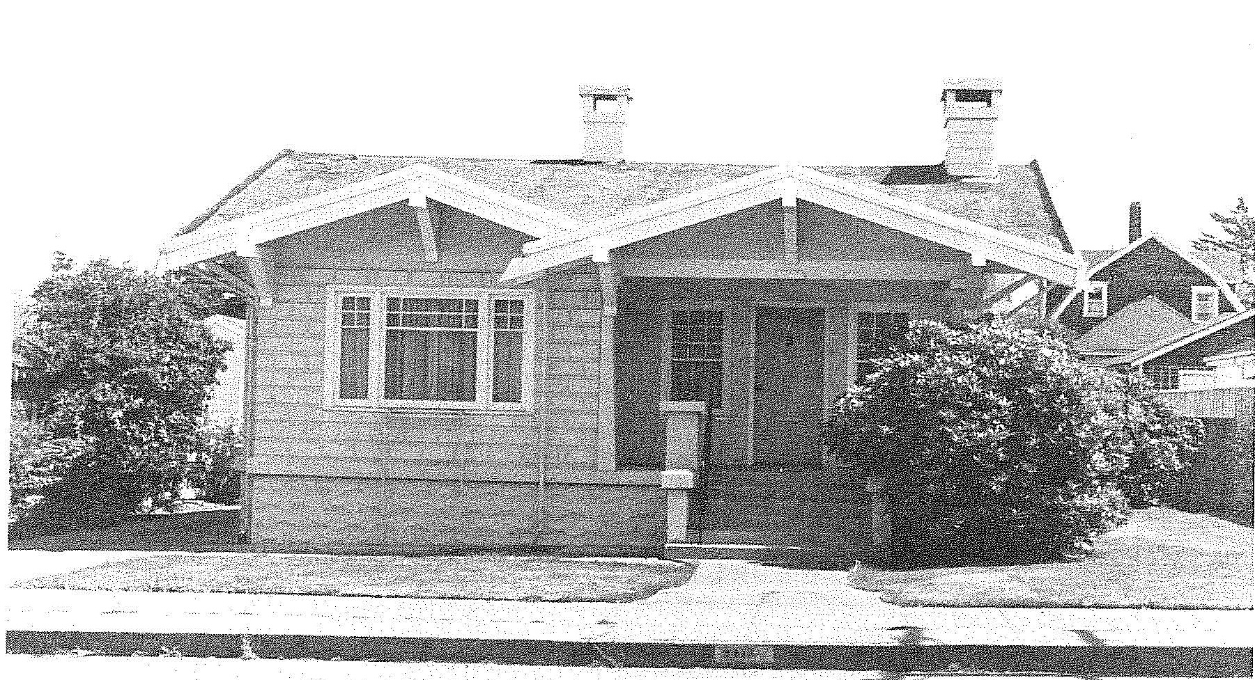 Built 1918 by Charles Mason. This home is a one-story poured-in-place concrete bungalow. Note the rustication that was designed into the concrete forms.