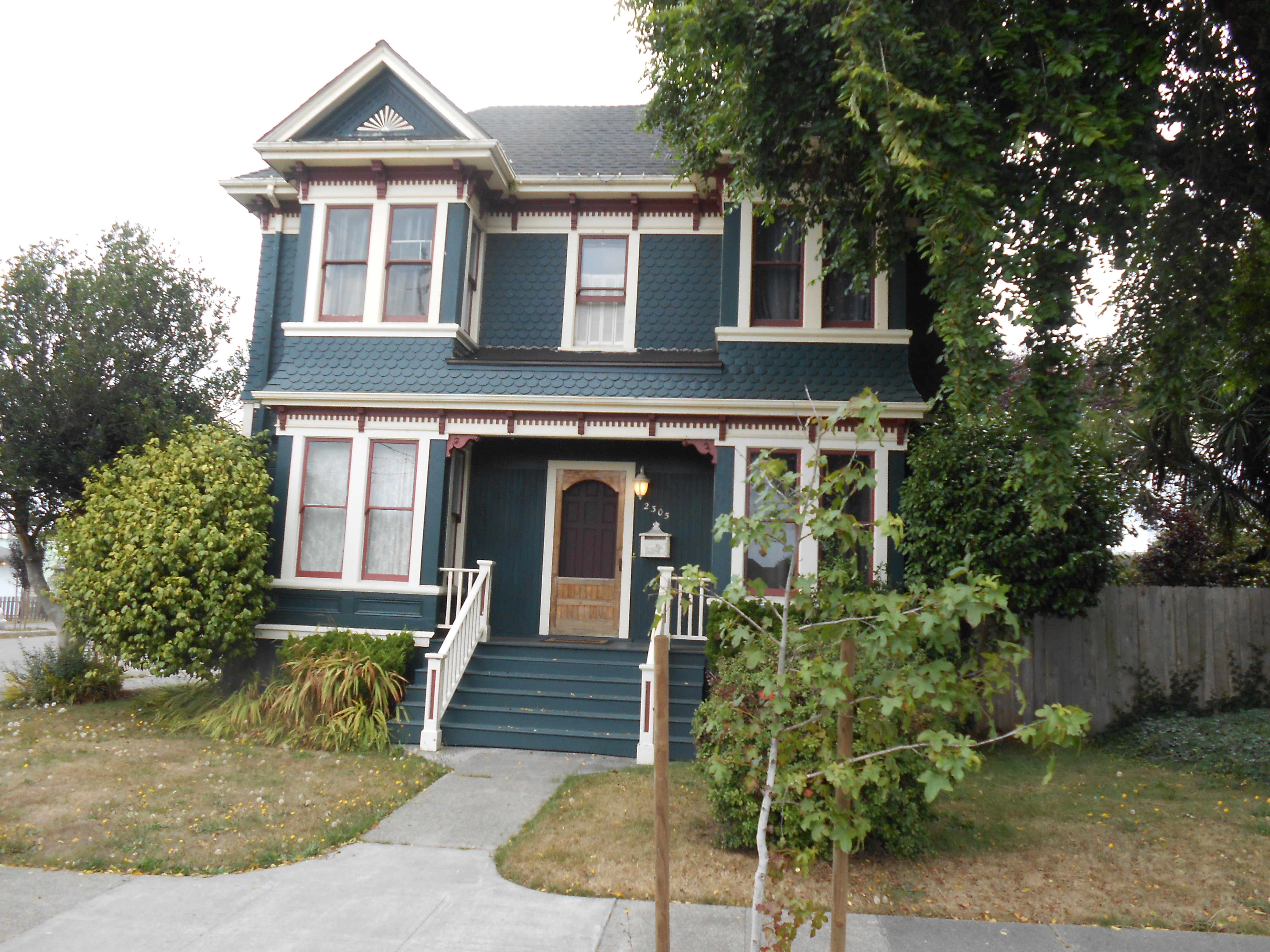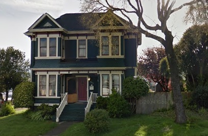 Built ca. 1890. A large I house with Eastlake decoration. The porch roof is an extension of the canopies over the two stacked bays and the house also features a complex hipped gabled roof and pedimented entry portico. The shingles are a later Queen Anne feature.