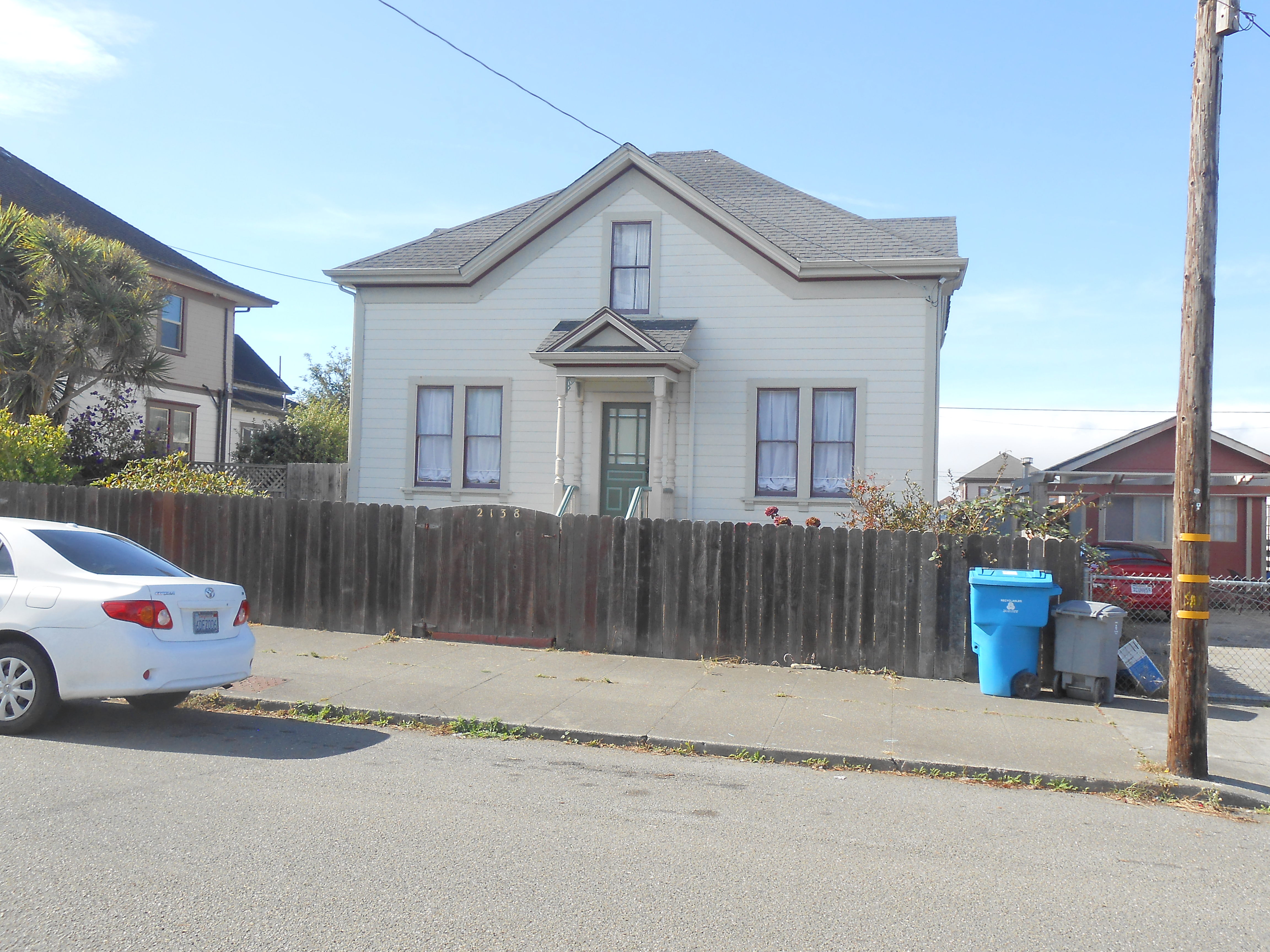 ca. 1880; one-and-a-half-story frame house with cross gable dormers and pedimented portico. (Eureka: An Architectural View)