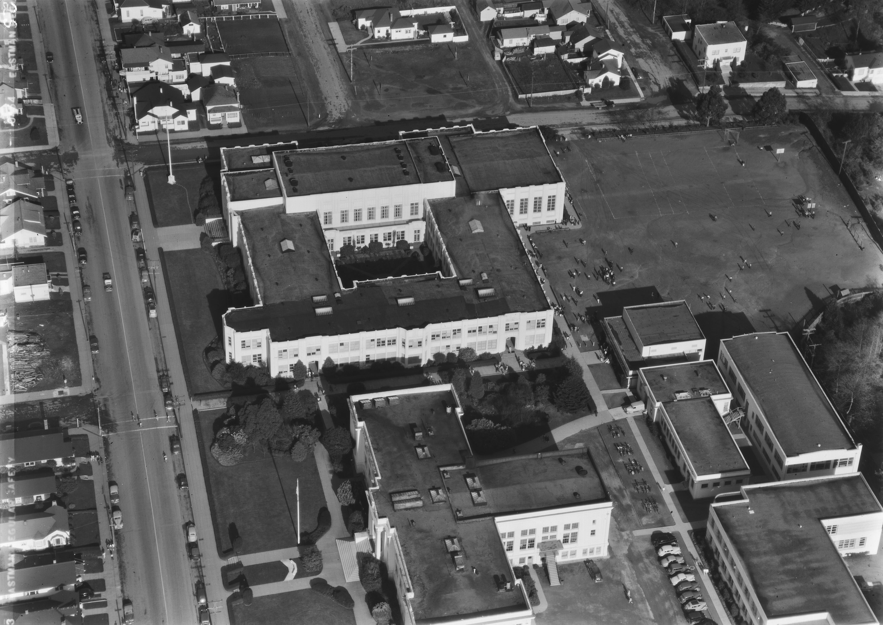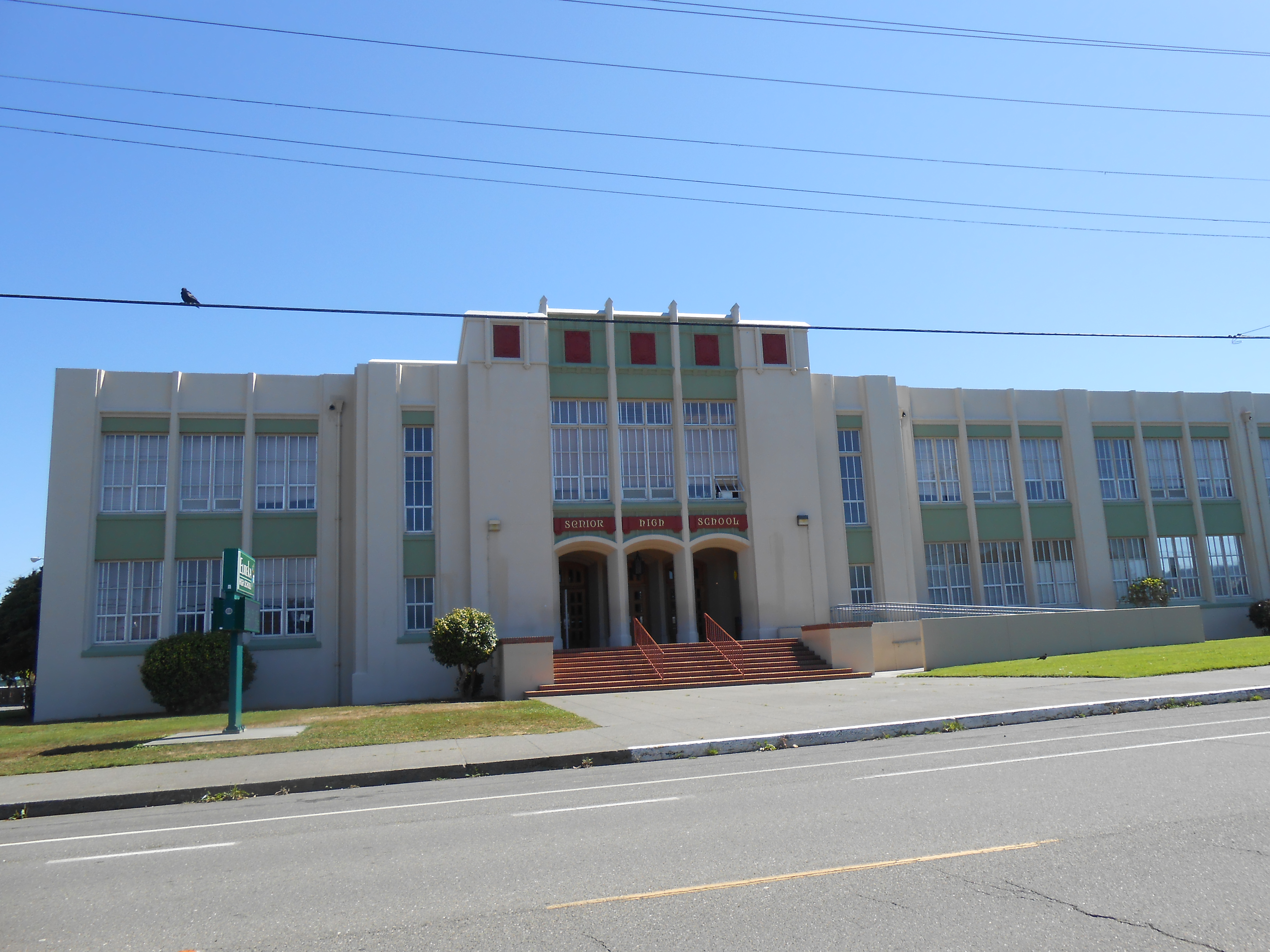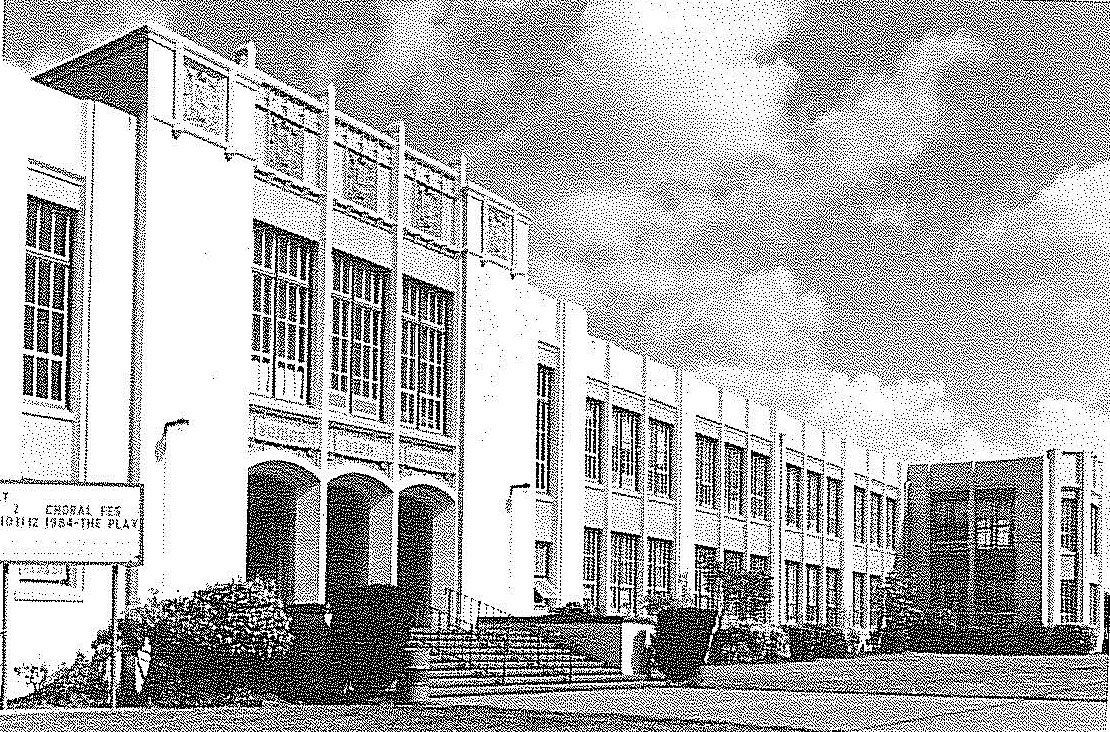 Built in 1925 in a Gothic Revival Style, almost synonymous with high school architecture in this period. In typical fashion, the entrance pavilion is highly articulated and divided into three bays, a pattern repeated on each end of the building. Traceried panels appear at the roof line. (Green Book) This building was built next to the high school building that was built in 1915 and torn down at a later date. The building that was torn down can be seen in one of the photographs next to this building.