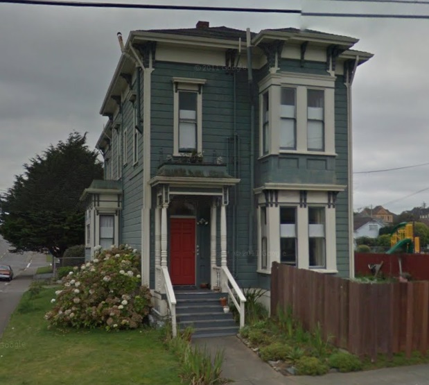 Built ca. 1890; two-story frame Italianate house with two-story square bay and Eastlake details. (Eureka: An Architectural View)