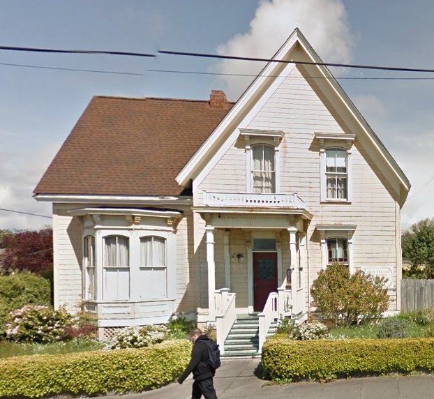 This one-and-a-half story Italianate upright-and-wing house has a bay window, entrance portico, and segmentally arched windows.Built in 11877, the bay window and porch seem to have been added later as you can still see the original porch canopy support under the newer one. The house was styled after Christ Church Parsonage and was built by Mills. The original owner was J. Chamberlain.