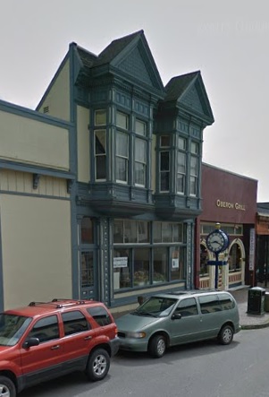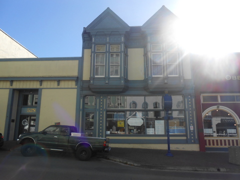 The two story facade on this commercial building was built by F.B. Butterfield circa 1893. (Green Book) Only the facade is original. None of the original building behind the facade remains.