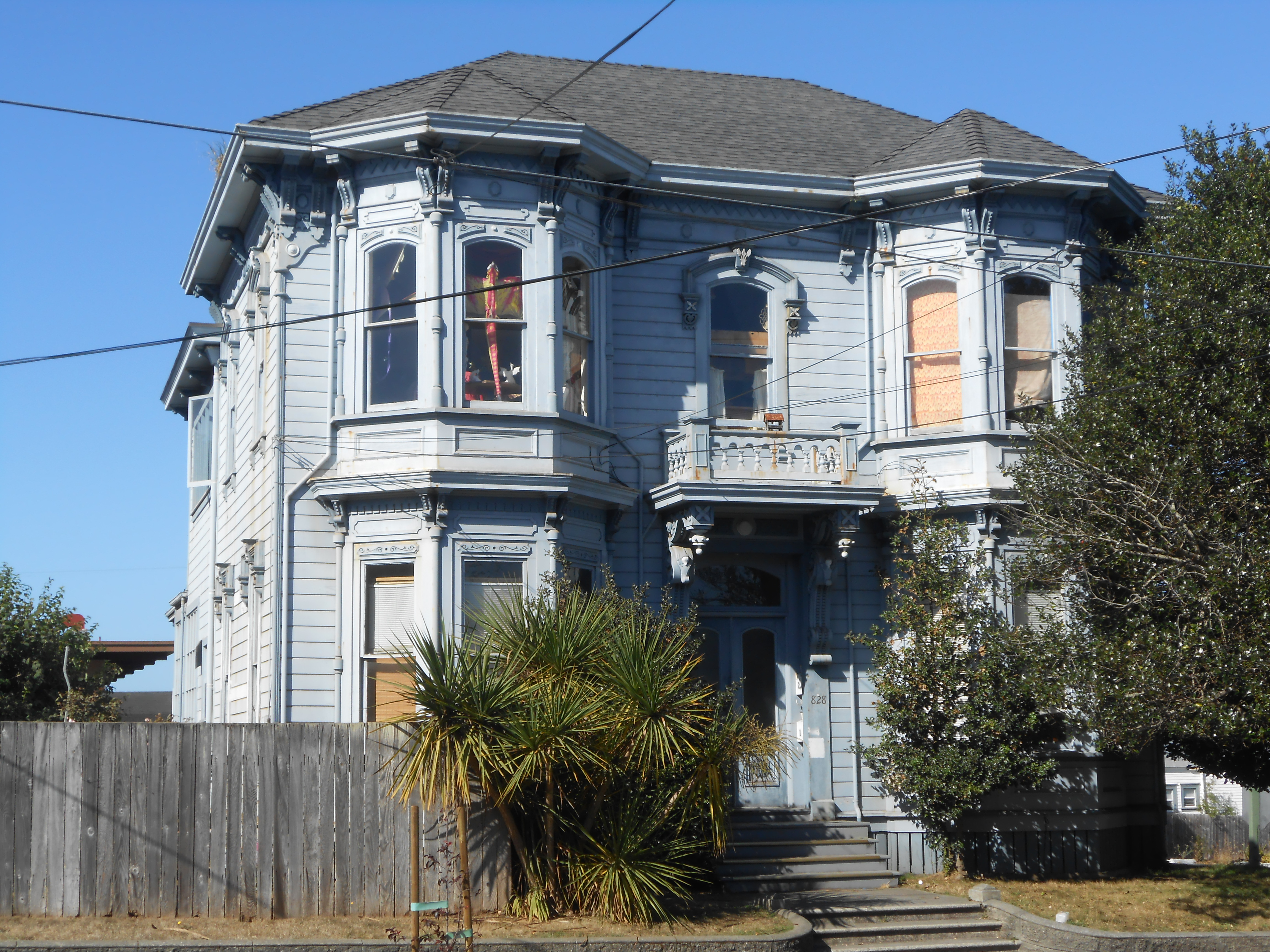 Built in 1882 and originally owned by A. Foster and members of the Foster family have owned the property for approximately ninety years. . This is a two-story elaborate Italianate house with two two-story, five sided angled bays with columnettes separating tall, round-headed windows. The flattish, hipped roof and large brackets supporting the porch canopy cinch it.