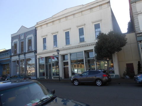 Built in 1881. This two-story frame commercial building was originally owned by Fred Axe and was the Post Office for Eureka until 1909. The rear two thirds of the building was removed during renovations in the early 21st century to make room for required parking in the rear. It originally extended to the alley in the rear but the street facing facade has remained intact.