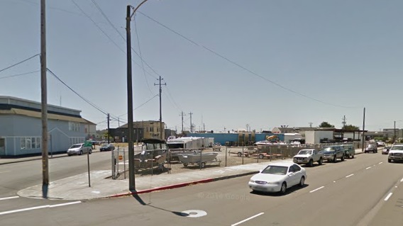 This triangular-shaped property, currently serving as storage space for a nearby business once marked the spot of the Triangle Motel. Built ca. 1937, and originally constructed in two stages, the Triangle Motel was an example of single-story vernacular Colonial Revival architecture. This short-lived building was demolished sometime in the 1990s. (Eureka: An Architectural View)
