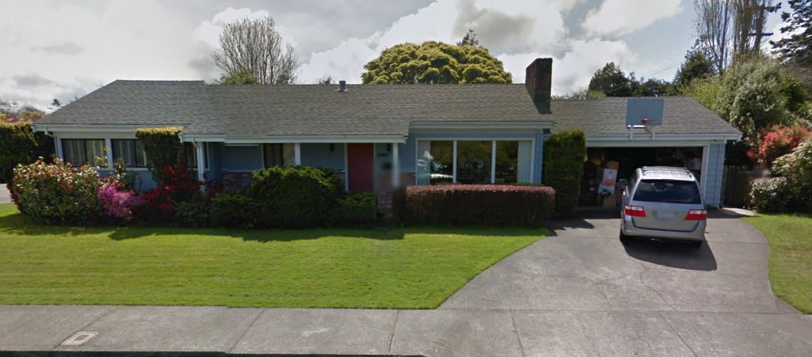 This is a ranch house with a gabled roof that was built by Ernest Pierson in 1954.