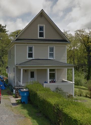 Built in 1906, this two-story house has a pitched pedimented gabled roof and full-width front porch.