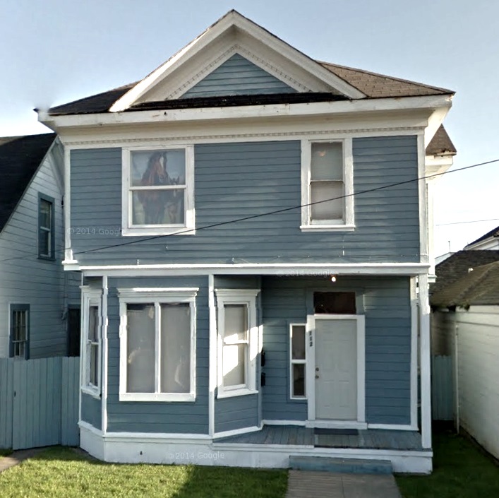 Built 1901 by H. Poland and originally owned by J. McIntosh. This is a two-story frame Queen Anne/Colonial Revival house with hipped roof, center pediment, and recessed porch and bay. It appears to have a large addition in the back.