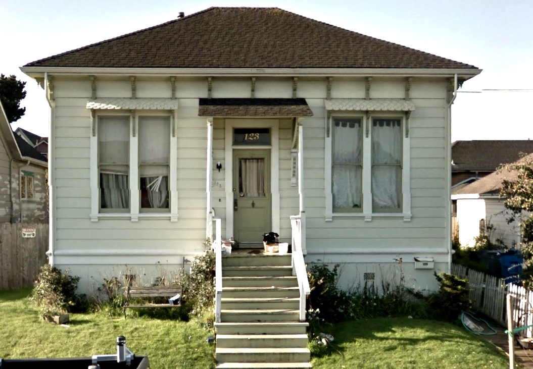 Built ca. 1885 and originally owned by J. Inguglia. This is a one-story frame cottage with hipped roof, bracketed cornice, paired windows, and shed roof supported by grand brackets over central entrance.