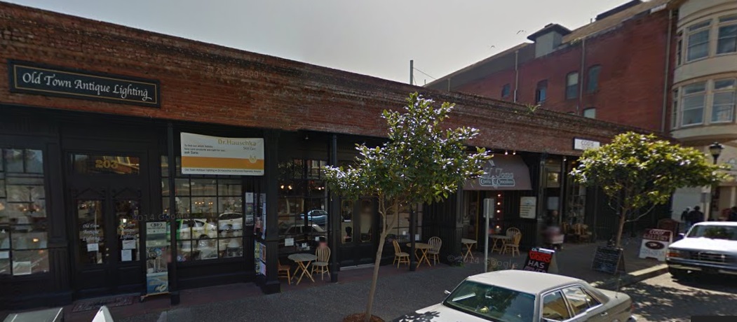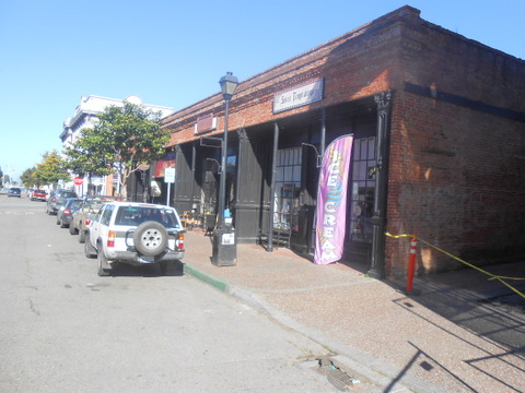 Built in 1878 by George Dauphing. This building, along with 403-11 Second Street and 420-22 First Street, embodies the change from wooden to brick commercial buildings which occurred as the city expanded as a manufacturing center. Originally constructed in brick with cast-iron storefronts, the Ricks Building was altered with a cement coating over the brick in 1891. Other alterations occurred over the years until the original character was lost almost entirely. This row of shops was restored in 1977 and today many of its original elements are once again visible. The building itself is noted for its fine iron columns at the front. The circular supports to the sides of the doors were originally corners for display cases, and note that these supports have a quarter notch which held the cases in place. A cornice, simply articulated by brick belt courses, appears over the cast-iron storefront.