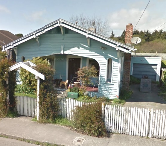 This is a one-story frame gable front Craftsman bungalow with slit gable end, eave brackets, and recessed full-width front porch. It was built ca. 1912. The original owner of record was W.Quinn.