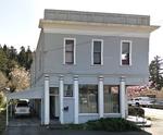 This is a two-story frame commercial/residential building with glazed first floor and corner entrance. It was built ca. 1908.