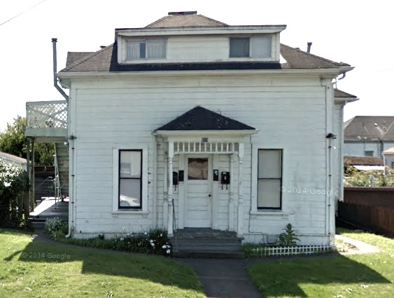 This is a one-and-a-half-story house with hipped roof and entry portico. It was built ca. 1905. A stairway to the half-story and front dormer have been added. The original owner of record was N. Peterson.