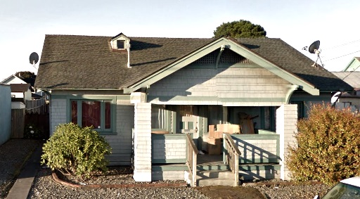 This is a one-story shingled Craftsman bungalow with low cross gable roof with large eave brackets. It was built in 1917. The original owner of record was C.Richardson.