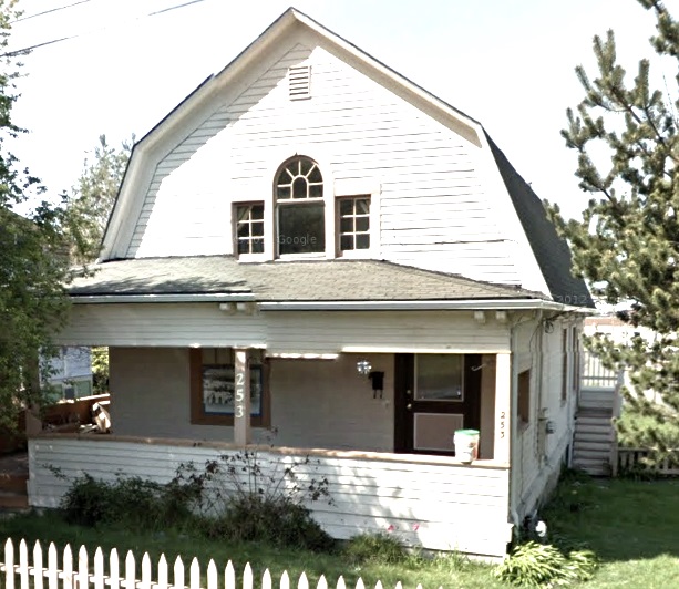 This is a one-and-a-half-story frame Dutch Colonial Revival house with gambrel roof, second-floor Palladian window, and wraparound porch. It was built ca 1920. The original owner of record was C.Smith. This house was moved from the West side of the 600 block of J St. sometime around 1948.