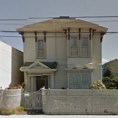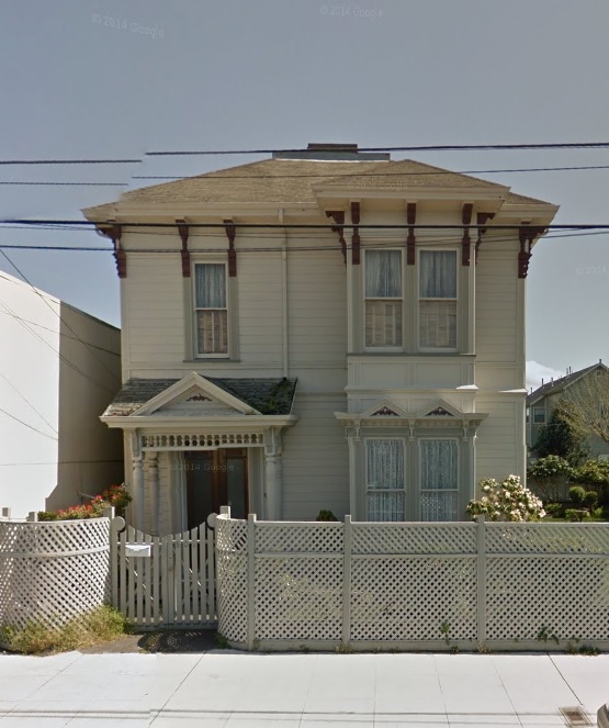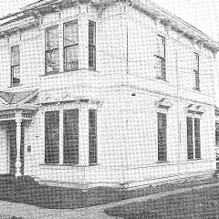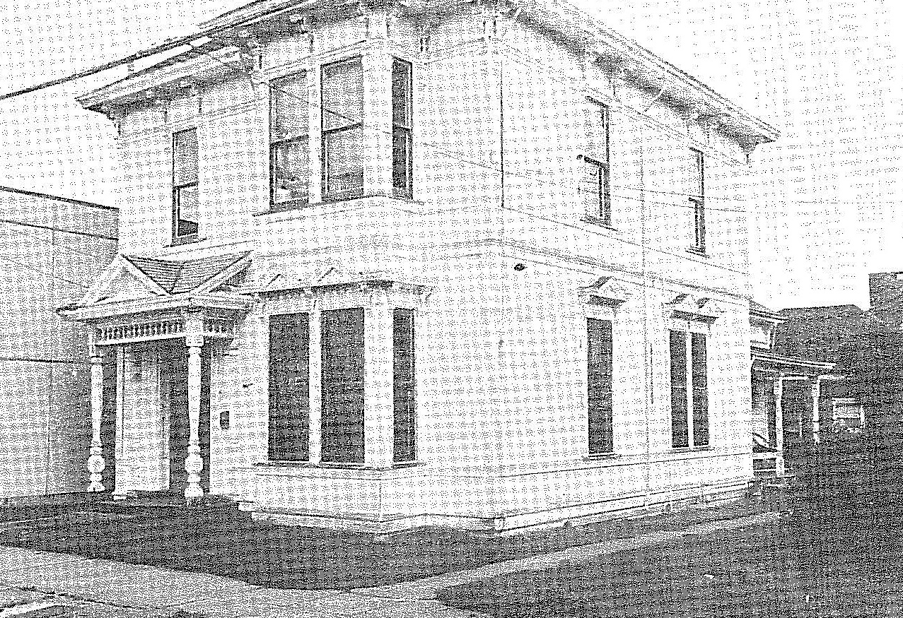 Two-story frame Stick/Eastlake house with hipped roof with elaborate brackets, two-story square bay, pedimented first-floor windows and entry portico built in 1889. Original owner James Long. Builders James and Harvey Long.