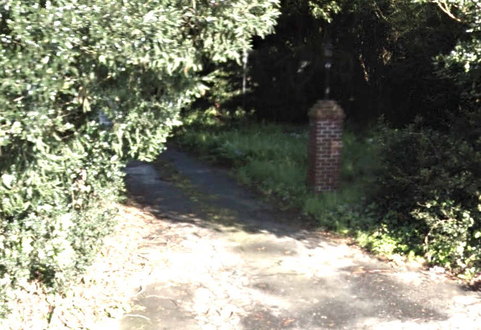 Totally obscured from the street by landscaping, this one-and-a-half-story shingled house has a gabled roof and dormer windows. It was built ca. 1907.