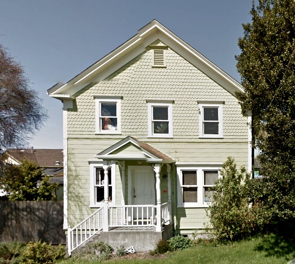 This is a two-story frame and shingle house with gabled roof and pedimented entry on gable end. It was built in 1888. The original owner of record was E.Tornwall.