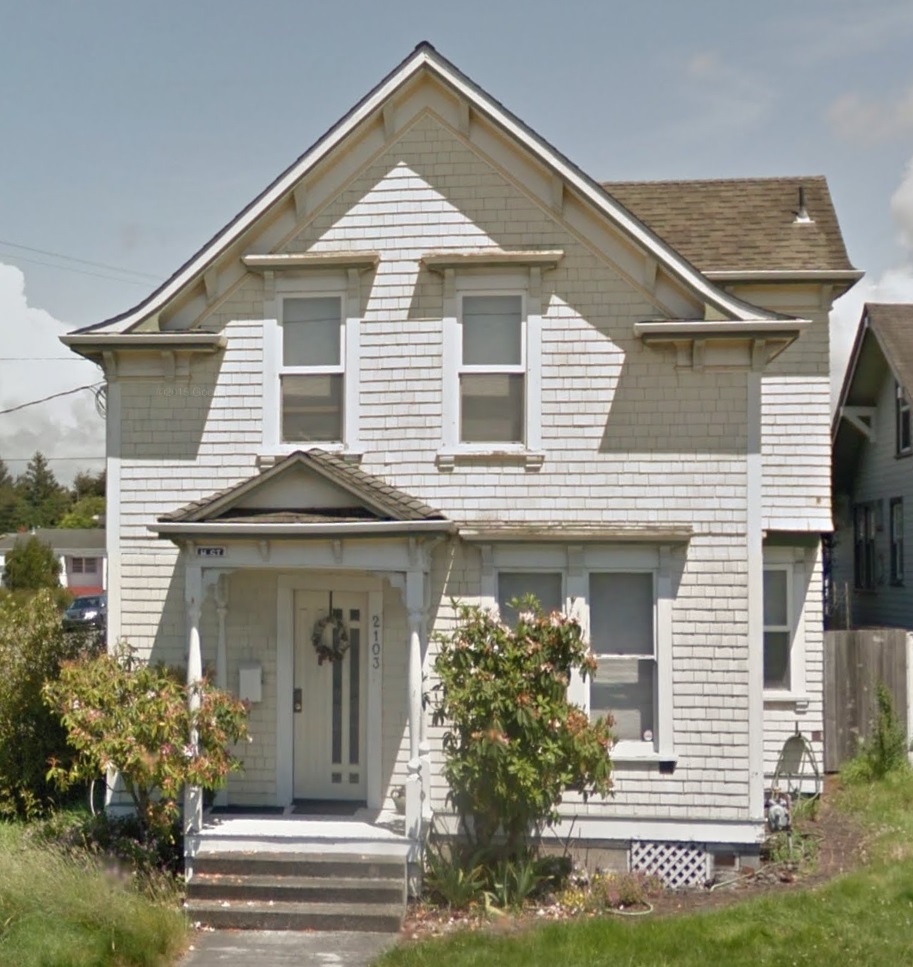 Built ca. 1870. This two-story frame vernacular Greek Revival home has been altered from its original condition, with a porch addition and alterations to the windows and door.