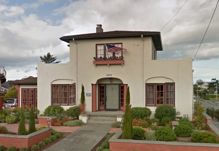 Built in 1923 by George Huggin; two-story stucco Spanish Colonial Revival house. (Eureka: An Architectural View)