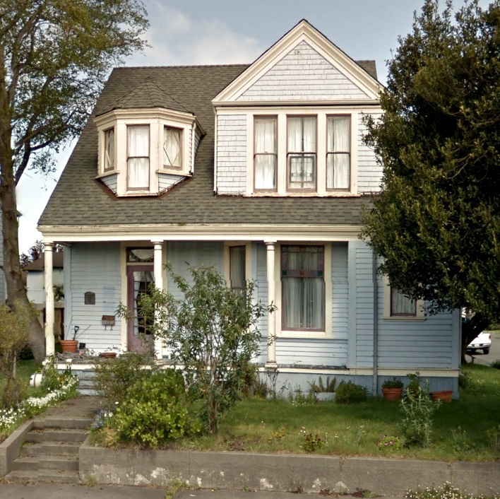 This is a one-and-a-half-story frame Queen Anne house with bay window, steeply pitched gabled roof with pedimented gable and multisided bay window dormer. It was built in 1893. The original owner of record was J.Shields.