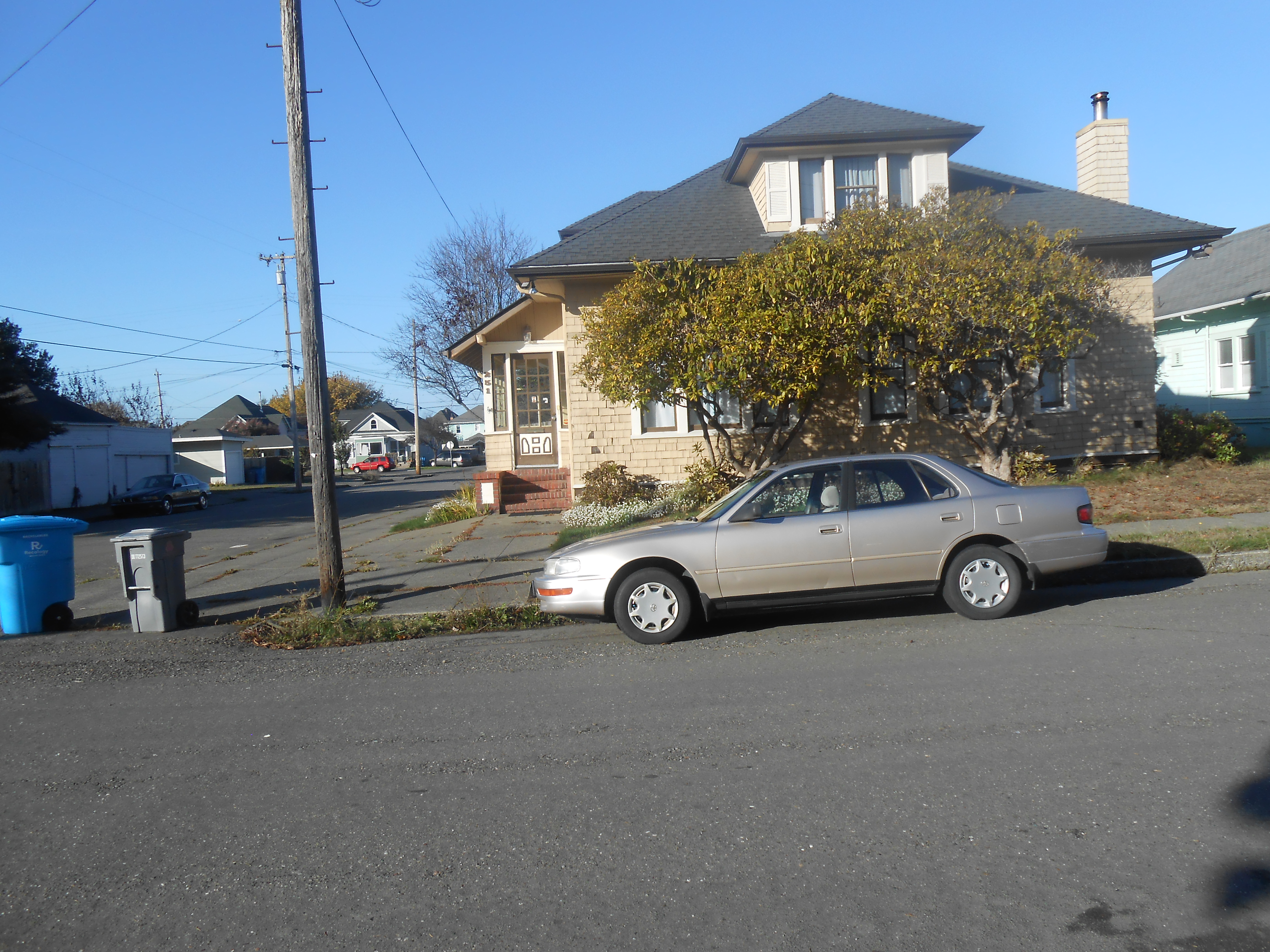 This home is part of the historic Fifteenth Street Neighborhood built between 1900 and 1917. The homes on this street, along with several on D and Williams Streets, are representative of Eureka’s relatively prosperous economy before World War I. The town’s population nearly doubled at the time of the railroad’s completion in 1914 and the need arose for working class housing. While some of these houses are late examples of the Queen Anne style, Classical Revival and Colonial Revival cottages, and Craftsmans bungalows are more common. Bungalows are generally one or one-and-a-half stories, have medium pitched roofs with gable ends, exposed rafters, porches with high pedestals, and closed railings that support stylized columns. These simplified cottages were created as a result of the developers’ need for easily constructed housing. By containing all of the space and materials could be achieved. Therefore, indented porches ans a restrained use of projections other than dormers are common in these houses.