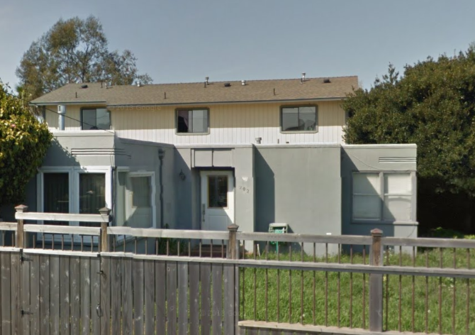 Erected in 1936, this one-story stucco Moderne house is characterized by wrap around windows. Horizontal in its general appearance, the home has sharp corners and edges that puts this home in a moderne category.