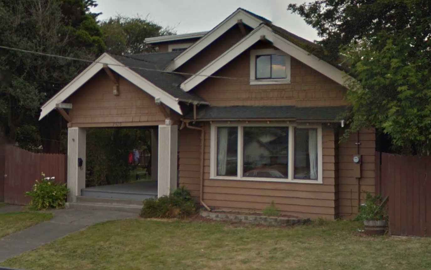 Built in 1915, this one-story shingled Craftsman home features a covered entrance patio framed by arches. Source: Eureka, An Architectural View