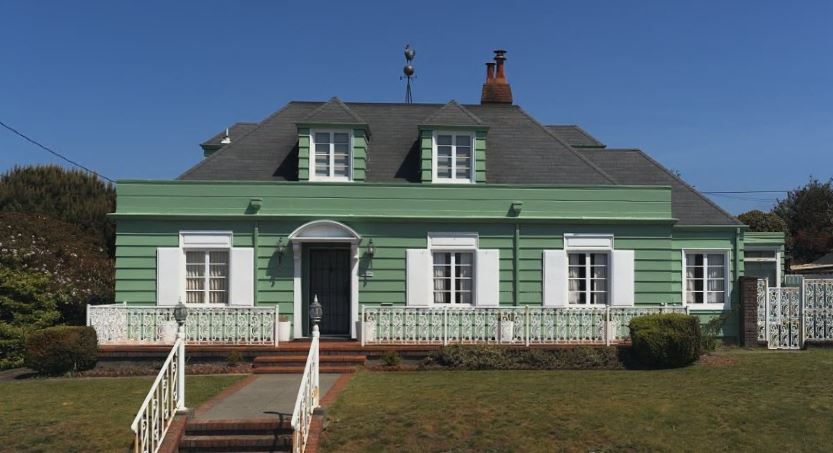 This is a one-and-a-half-story Regency house with a steeply pitched roof. It was built by F.J. Maurer in 1925.