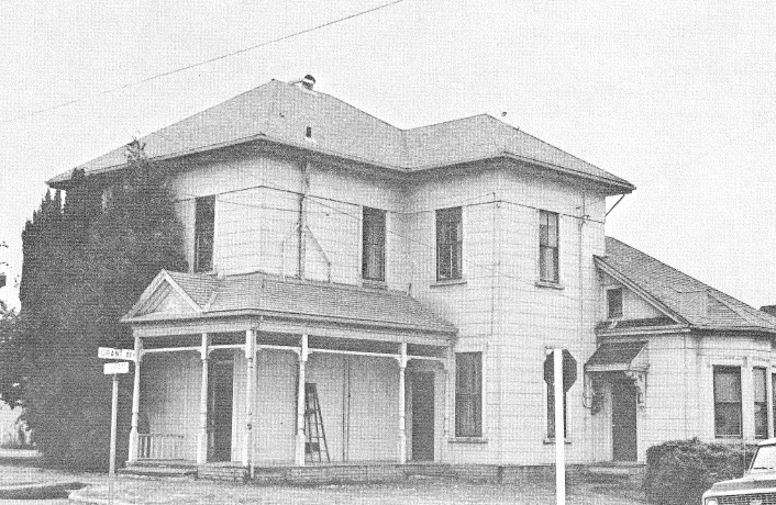 Built 1892. A large L-plan two-story house, mostly wrapped in a single story porch, and rambling out extensively in back as a series of seemingly original shed-like additions. Handsome pediment on the porch and remnant trim suggest former luxury. This residential structure has much been altered with a coat of asbestos shingles, new fenestration appears, and much trim has been removed judging from the remnants left.