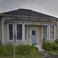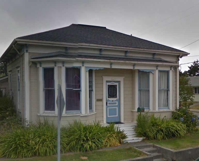 This one-story frame cottage was built in 1912 with a hipped roof, bracketed cornice, symmetrical slanted bays and a central entry. Source: Eureka, An Architectural View.