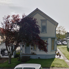 Originally owned by S. Steele and constructed in 1904, this building is considered a shingle house with a gabled roof, recessed porch and bay windows.