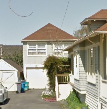 Built ca. 1906. Two-story garage apartment with pyramidal roof.