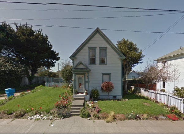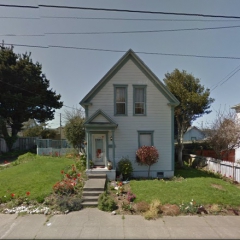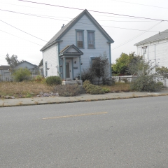 Constructed in 1885. This is a one-and-a-half story frame house, with a gabled roof, pedimented portico, and four-over-four windows.
