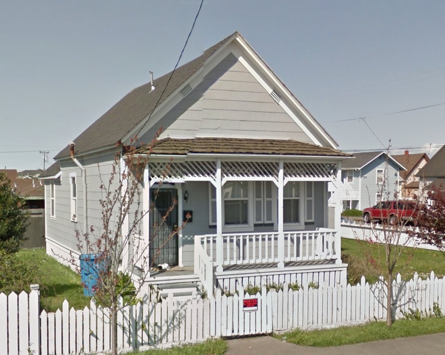 Built 1923. This home is a tight worker’s dwelling featuring a tiny porch strung across the fa