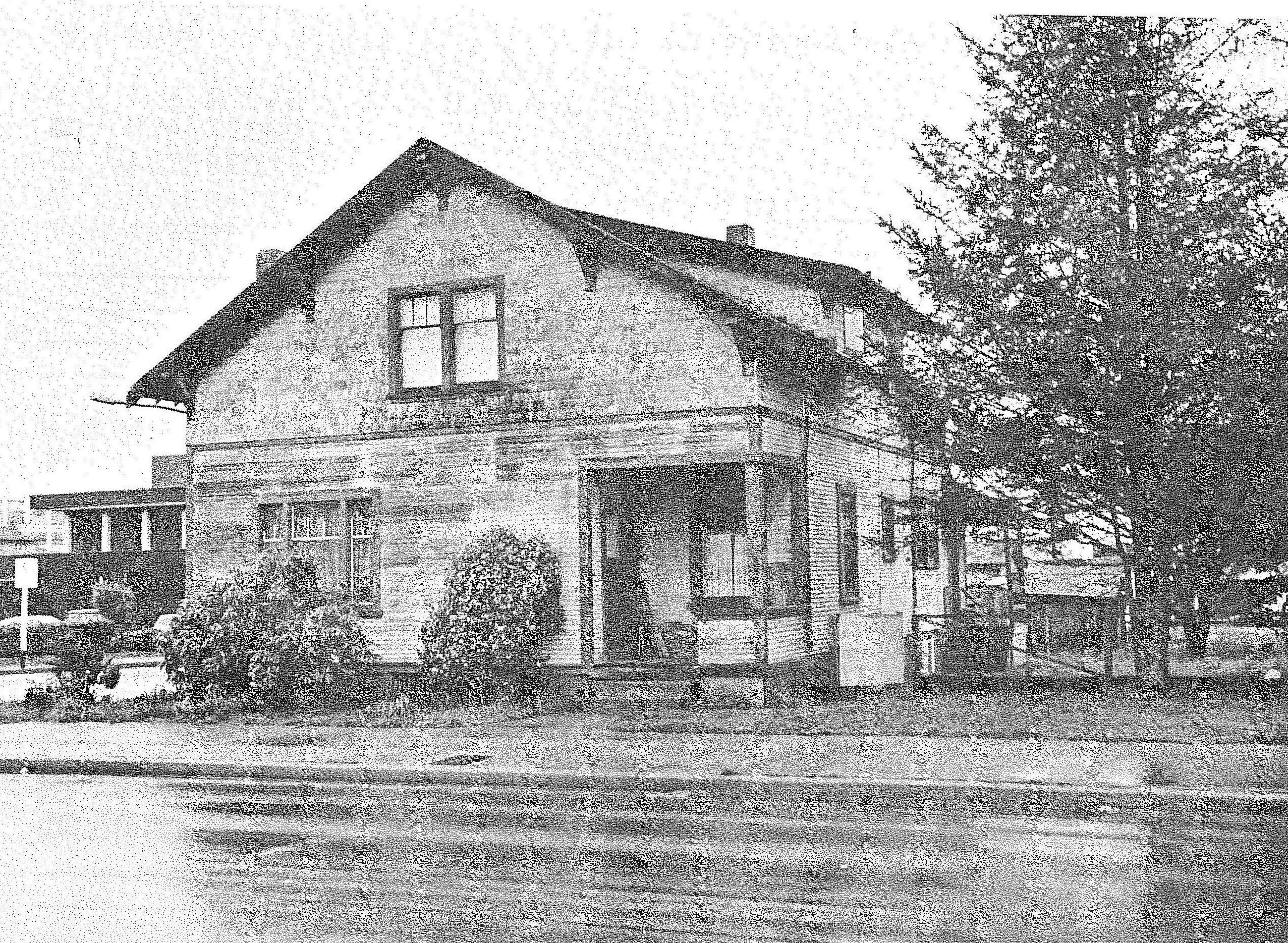 Built 1924. Narrow clapboard girds the ground floor of this boxy house. The corner entry porch is supported by a box column; some stick brackets at the eaves and shingles on the second floor walls soften the look of the structure. The house also boasts several side dormers and a rear porch. Credit : Caltrans Architectural Inventory