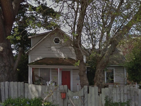Built ca. 1890. This charming one-story L-shaped house stands alone on the street, surrounded by industrial lots. It lies directly against the property of the Blue Ox Millworks and Historic Park.