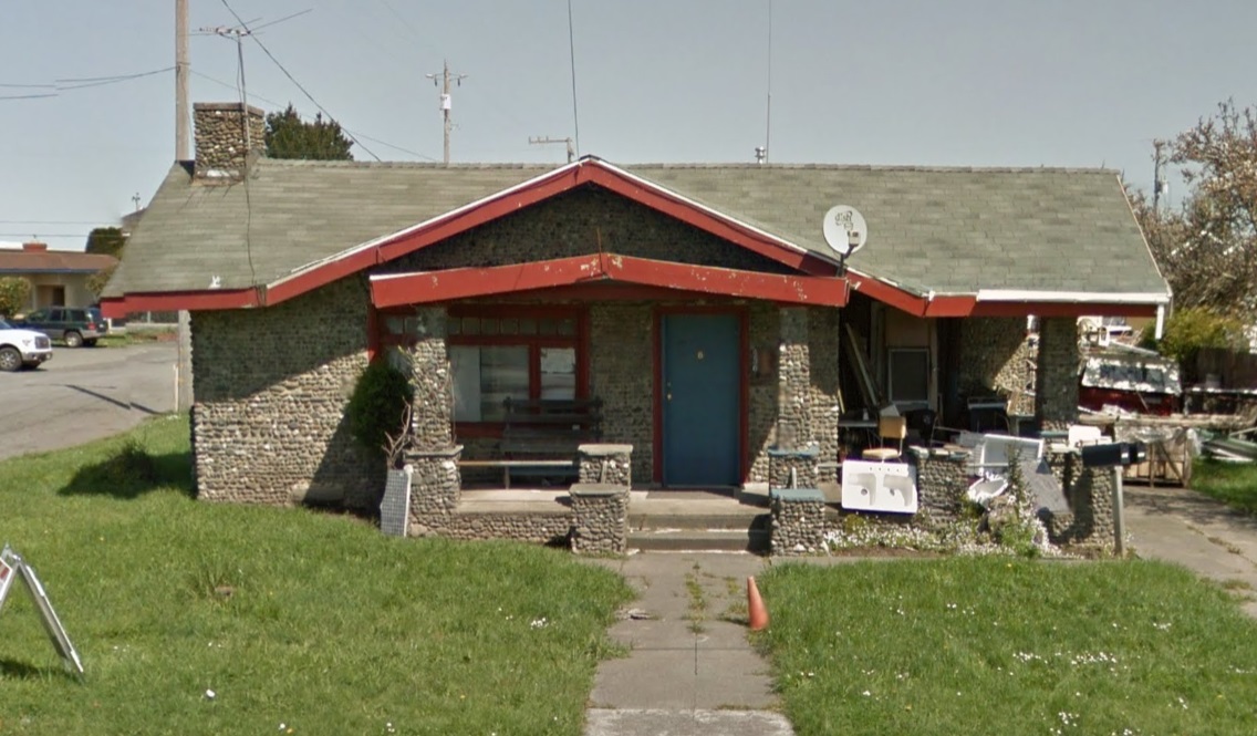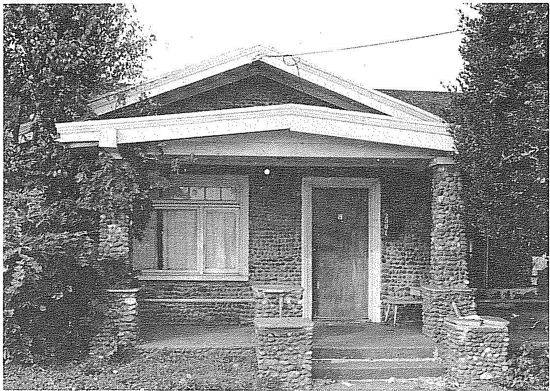 Built 1920. The Klemp House is a unique bungalow constructed using over 100,000 river stones. Typical bungalow elements of this structure include a central gable and porch.