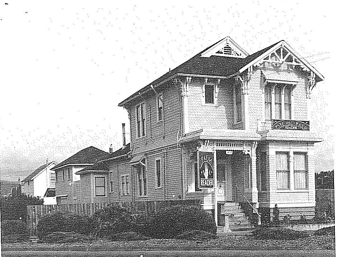 In a lumber town with easy access to milled decoration, it is not unusual to see a residence like the Boyd House. Essentially Stick style in character, it has been transformed into an Eastlake confection by the extensive use of patterned shingles, elaborate brackets with drop pendants, king beam spindle molding in the gable, and various other cut-outs and turned ornamentation – all intact and in good condition. The house was designed by the Newsom brothers of San Francisco and was featured in their book “Picturesque California Homes,” published in 1884. (The Green Book)